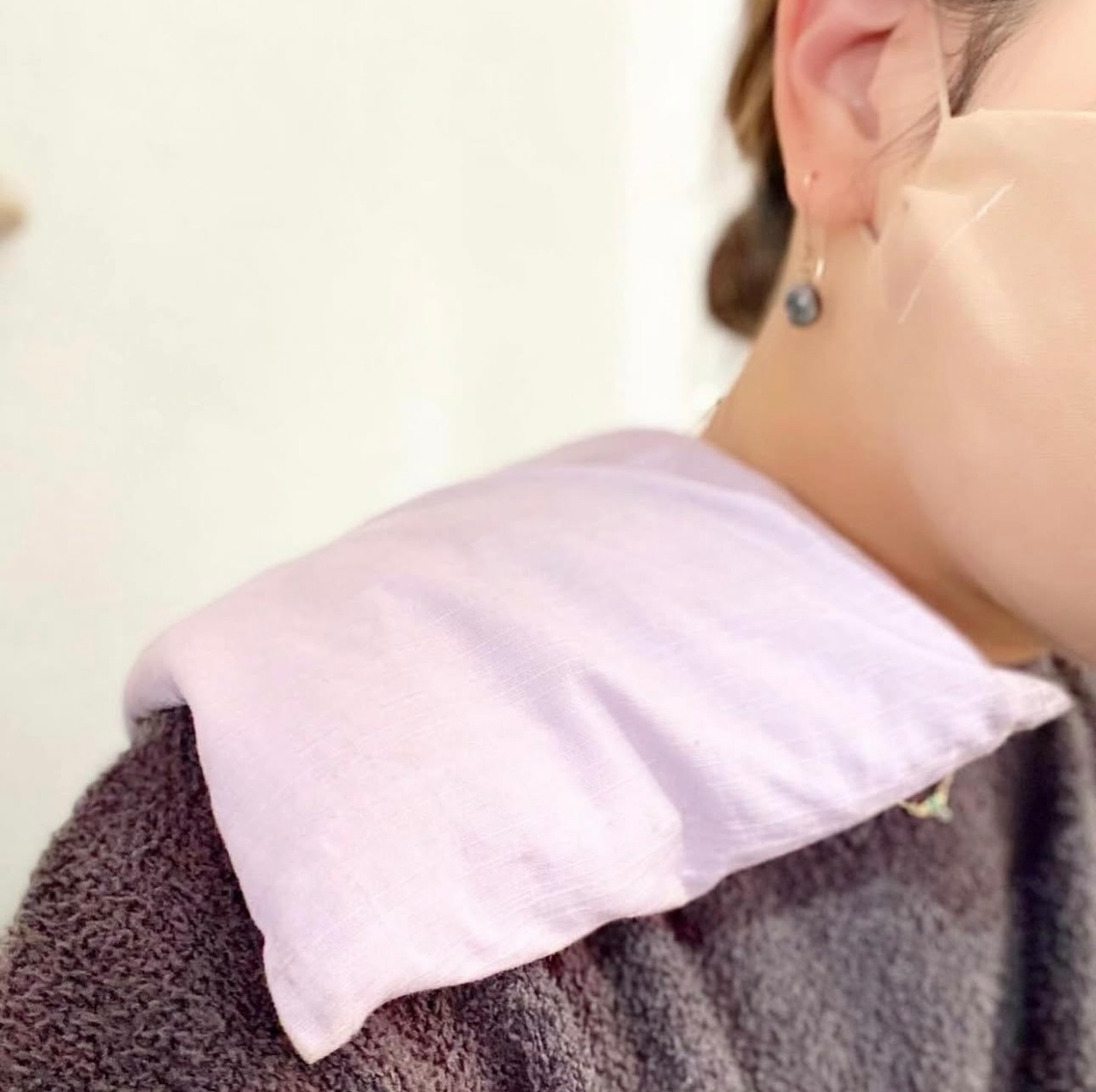 600wの家庭用電子レンジで1分加熱し、身体に当てるだけ。首の後ろ、肩、お腹、足、お尻など、ご自身の体の温めたい部分に使用してください。保湿と焦げつき防止のため、電子レンジ対応のコップに半分水を入れて、一緒に温めるようにしてください。