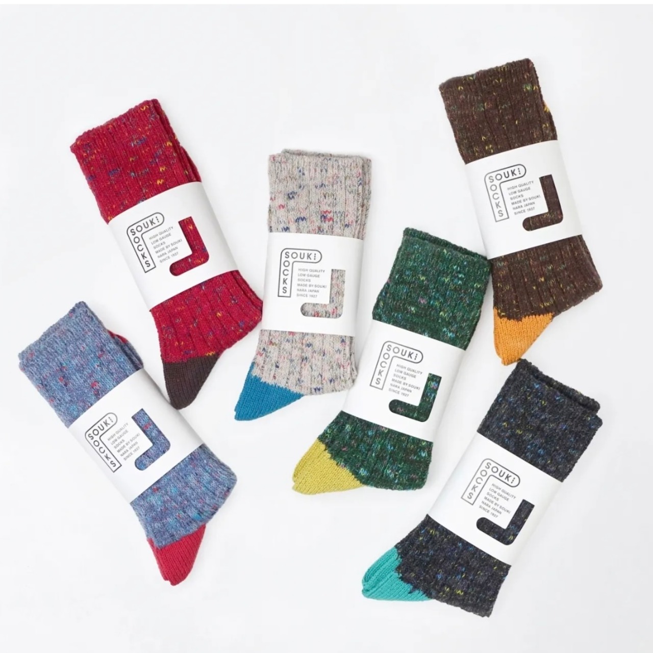 SOUKIが代々受け継いできた稀少なローゲージの編機と技術で、素材の良さを最大限に感じてもらえるくつ下をつくりました。