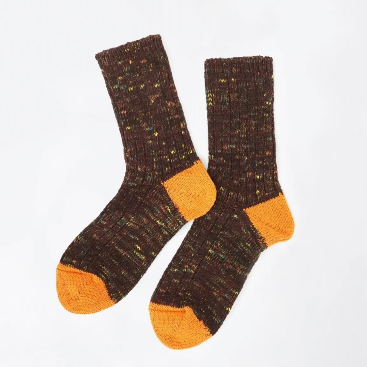 軽くてふっくらとした履き心地はそのままに、ローゲージ編みならではの複数糸使いで、より個性的な表情に仕上げました。シンプルなコーディネートのアクセントにもぴったりです。