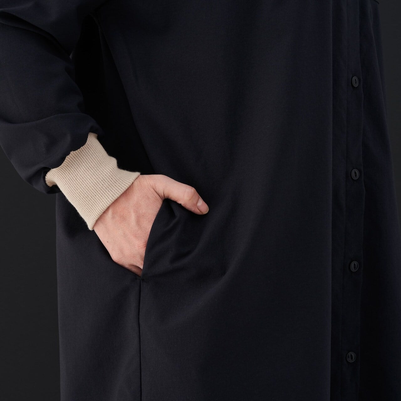 力仕事をする時、洗い物をする時などはもちろん、気分を新たに何かに取り組みたい時に、私たちはシャツのそでを上にあげます。シャツのそでをリブにしたら、簡単にそでを上げ下げできる、着心地のいいシャツができました。国内の縫製工場できちんと仕立てた、新しい「ワークシャツ」です。