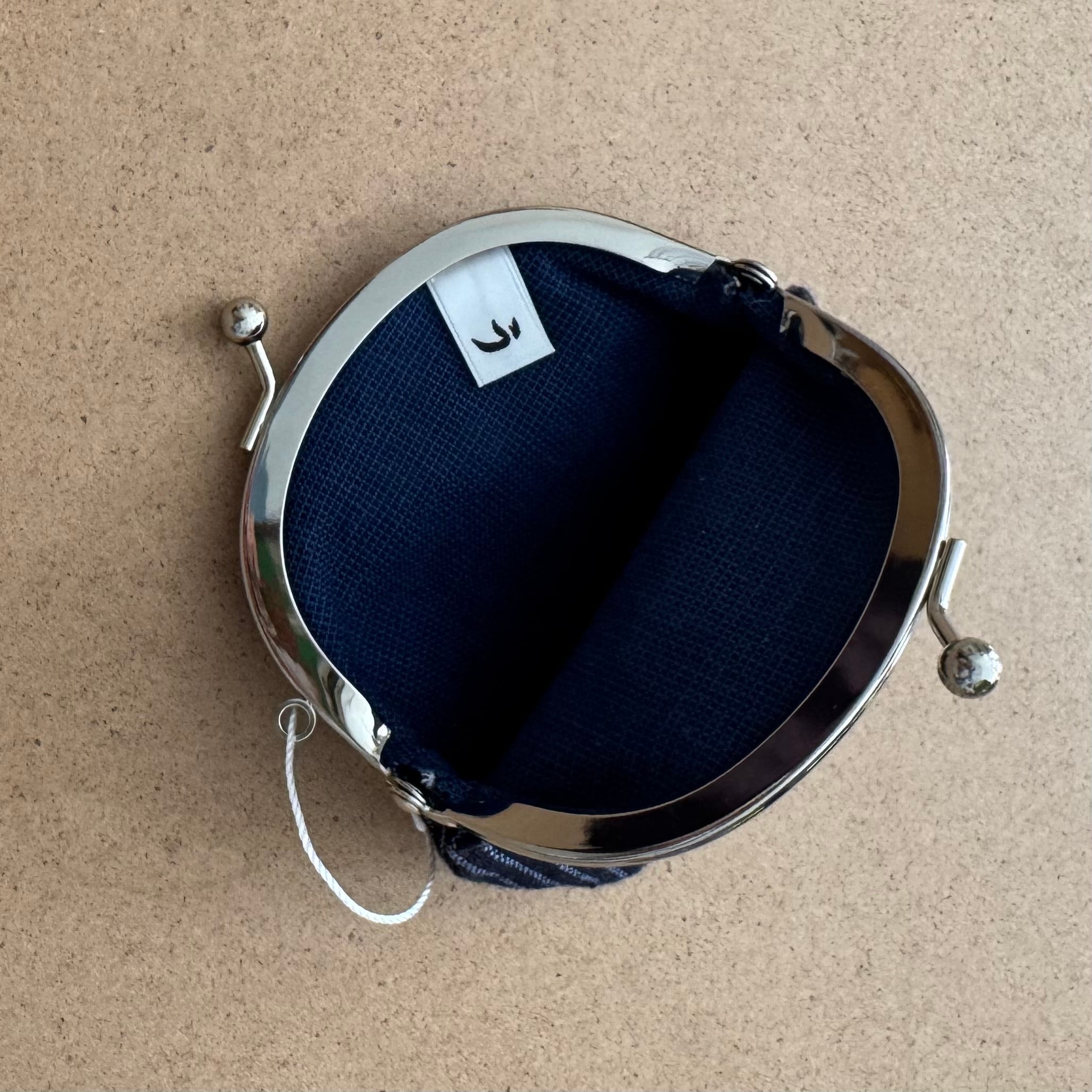 小銭入れはもちろん、イヤフォンや目薬などの携帯する小物を入れるのにちょうどいい大きさです。裏地には無地の久留米絣を使用しています。