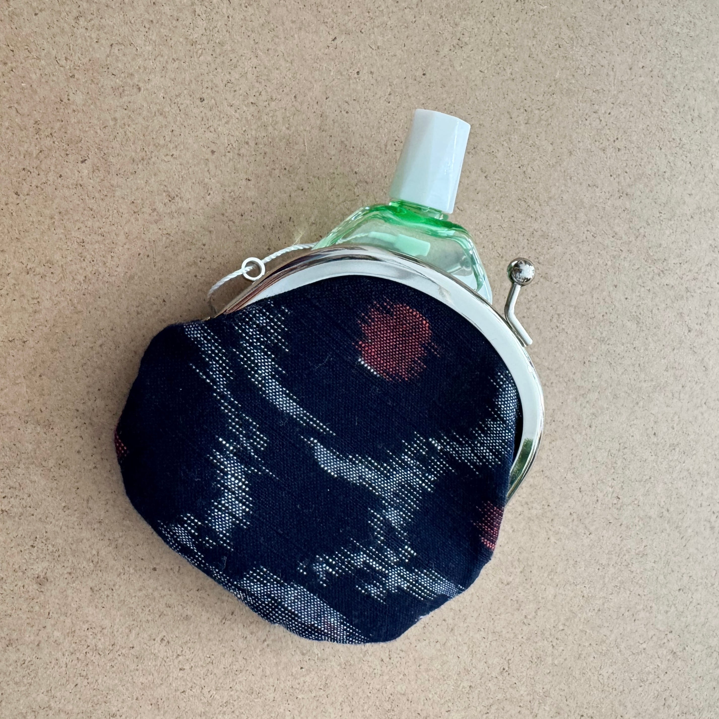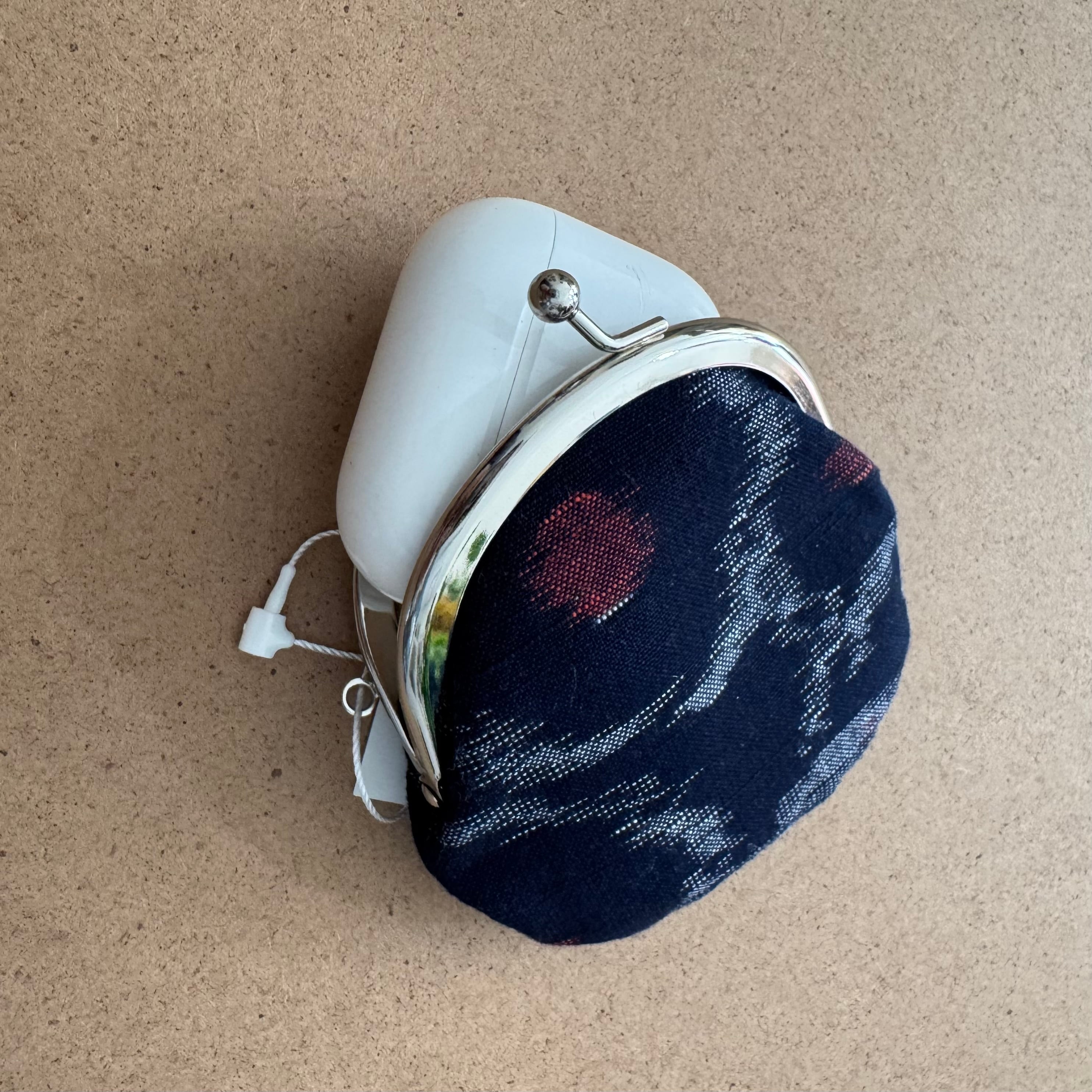 小銭入れはもちろん、イヤフォンや目薬などの携帯する小物を入れるのにちょうどいい大きさです。裏地には無地の久留米絣を使用しています。