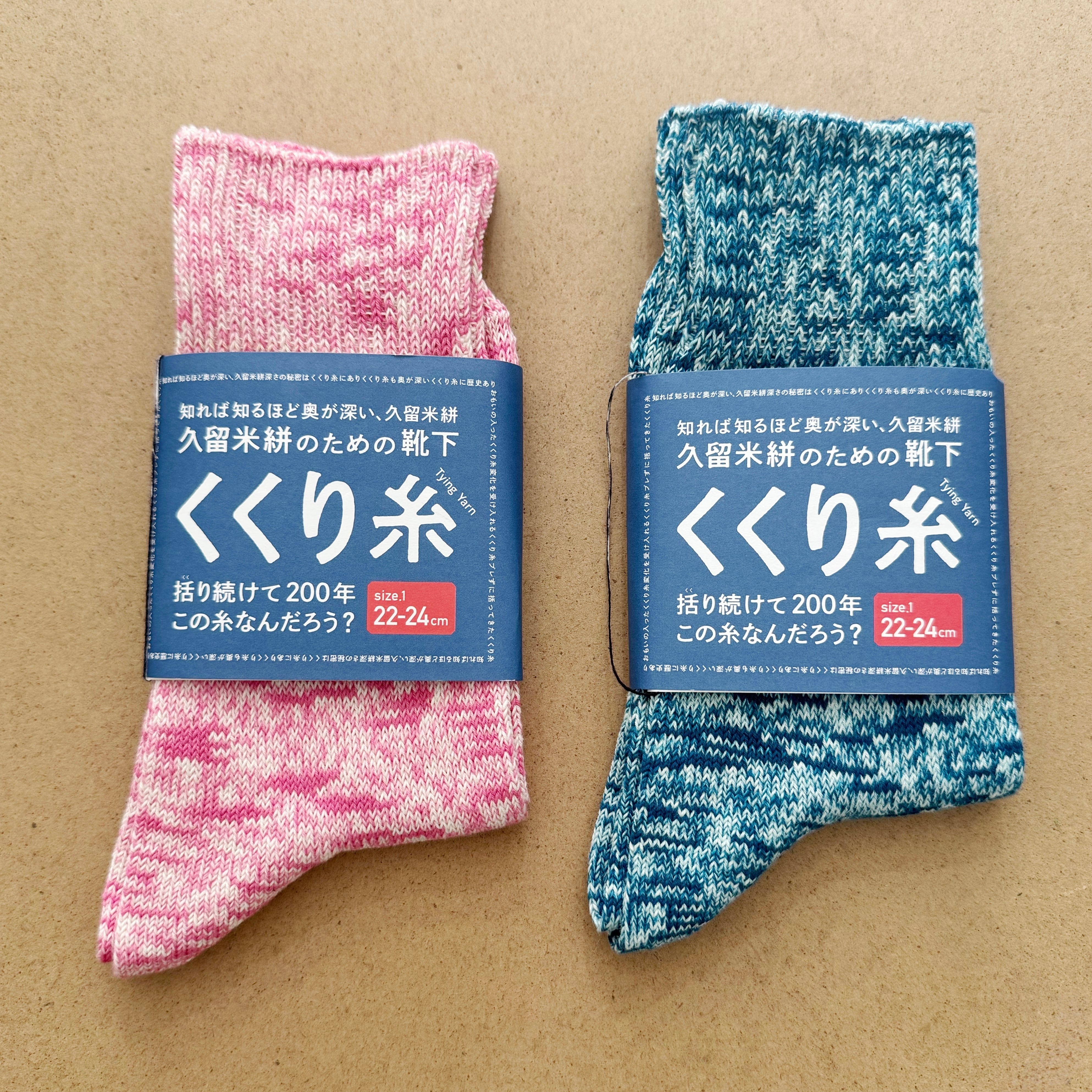 久留米絣の柄を生み出すのに欠かせない「くくり糸」を使った靴下