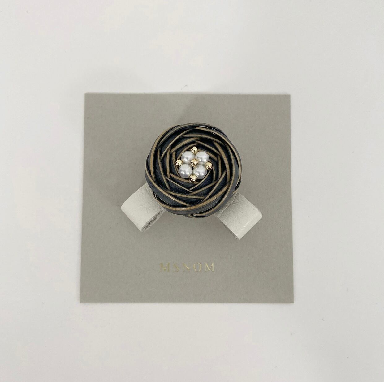 【MSNOM】お花結びラタンブローチ レザーリボン付